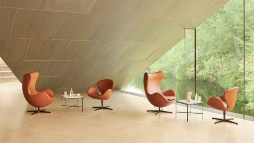 The beautiful Swan™ chair was designed by Arne Jacobsen in 1958 for the lobby and lounge areas of the SAS Royal Hotel in Copenhagen. The design contains no straight lines, making it look organic and soft despite its simplicity and strong architectural appeal.