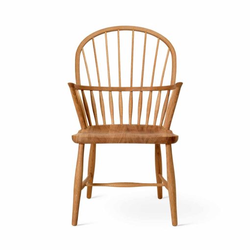 The Windsor Chair was designed in 1938 by the Danish architect and cabinetmaker Frits Henningsen. In continuous production at Carl Hansen & Søn until 2003, the majestic chair is now reissued with modern comfort in mind.