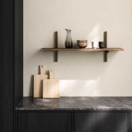 A Light Shelf is a decorative shelf with a minimalistic graphic expression, available in both a white pigmented and a natural oiled version.