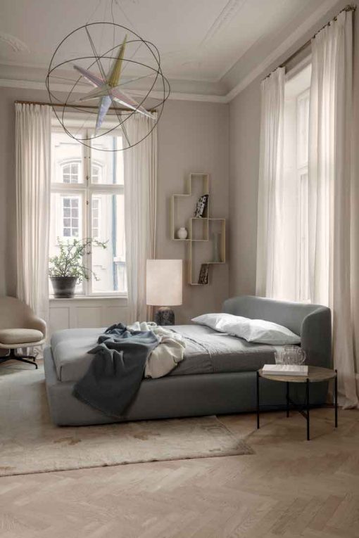 Mathieu Matégot’s Dédal Shelf is a result of his passion for the groundbreaking and innovative pairing of metal tubing and perforated metal sheet. The Dédal Shelf is designed in 1955 and holds the advantages that Rigitulle entails – the metal’s hardness as well as the fabric’s lightness. Though apparently simple, the Dédal Shelf is often composed on several levels. The graphical shape matches each other and when grouped together they form a new design, almost a geometric pattern – especially when the shelves are juxtaposed.