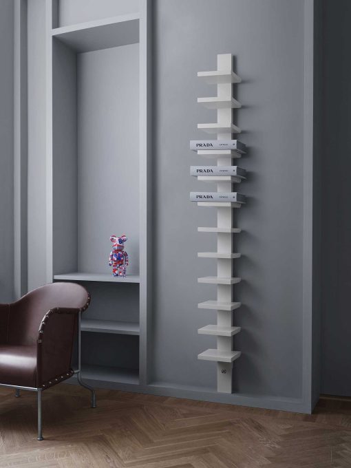 The Pilaster shelf was designed in 1989 by John Kandell for Källemo. The idea for Pilaster, to stack books horizontally, came to John Kandell one night in his living room as he looked at the piles of books on the floor and his full bookshelves. The shape of the shelf was communicated over the phone in a conversation with Källemo’s founder Sven Lundh – no drawing was needed.