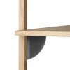 A new and modern take on Mid-century shelving units, Sector is defined by its sturdy simplicity and classic combination of wood and brass – available with natural oak veneer or black stained ash veneer shelves, and polished brass or blackened brass brackets. Available in two sizes, the shelf attaches to a wall with the accompanying solid wood uprights with visible screws. Use it to display favourite objects in a living room or storage jars in a kitchen.