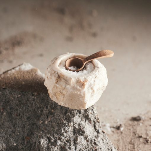 The shape of the rustic tea light candle holder is created by hand and the name Batu is inspired by its sculptural expression and means “stone” in Indonesian.