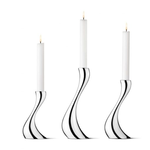 Since its introduction in 2008, the COBRA line has been a resounding success When you pick up the COBRA, its smoothness and weight is apparent. Designer Constantin Wortmann set out to make a traditional candle holder for today. It is reminiscent of an antique candlestick in its substantial weight and height but is nothing like its forebears in that it has voluptuous, gravity-defying curves rendered in mirror polished stainless steel. Like the mystical snake that inspired it, it can be hard to look away from COBRA candlesticks, particularly when arranged in pairs or threes.The irresistible candlesticks are now available in three different sizes so that you can turn your table or mantelpiece into a captivating tableau.^