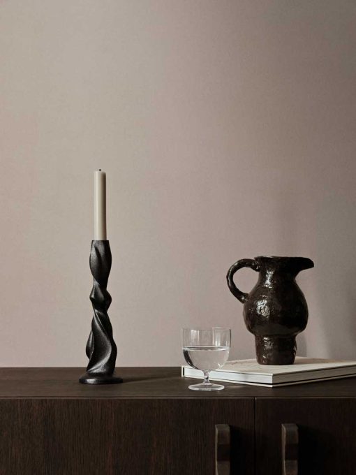Inspired by the swirling movement of wind, the Gale Candle Holder mirrors the dynamic patterns of a storm. This sculptural piece is crafted from recycled cast aluminum and serves as an eye-catching element in any setting. Whether used individually or paired with another Gale Candle Holder, it will add a unique dimensional quality to your decor.