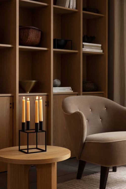 Mogens Lassen designed the very first Kubus candle holder in 1962 for the interior of a restaurant in northern Zealand, Denmark. The geometric candleholder series has since become a much-loved icon of Danish design thanks to its timeless, Modernist form and enduring function. Kubus 4 is a mood-enhancing addition to any space, creating a cosy atmosphere wherever it is placed. It is available in a range of metals and finishes.
