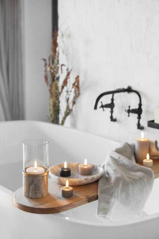 Crafted from luxurious, genuine marble, the versatile Marble Lantern is designed to accommodate three different types of candles depending on your needs and taste. Included with the Marble Lantern is a glass hurricane which magnifies the ambience and the play of light. The Marble Lantern is finished with a sophisticated brass-coloured rim, providing a timeless and elegant touch.