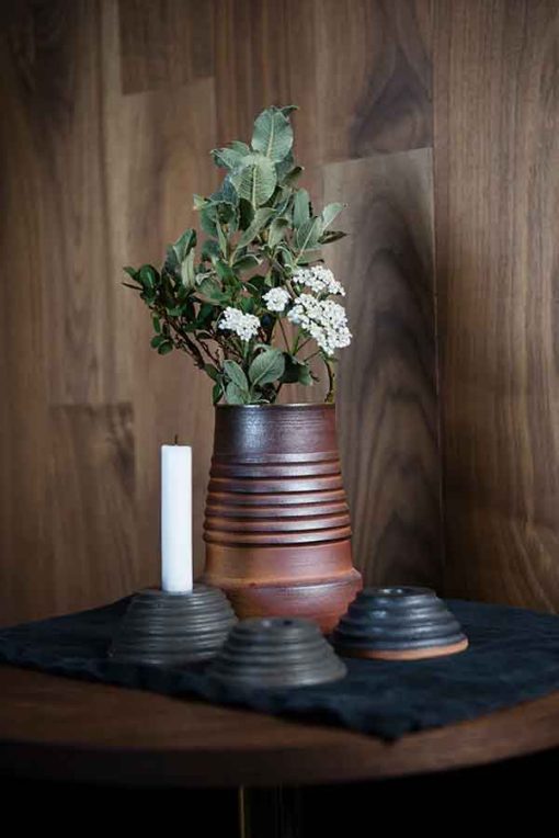 Hver kertastjaki er einstakur þar sem allir leirmunir, gerðir í Lettie Stuart Pottery í Sierra Leone, eru handgerðir og brenndir í viðarofni.  Litamunur er alltaf einhver eftir staðsetningu í ofni og hitastigi.  Einnig getur formið verið örlítið mismunandi þar sem nokkrir aðilar renna hverja vöru. Leirinn er handunnin úr jörðu í Sierra Leone.