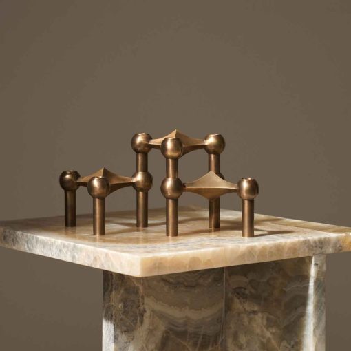 The bronzed brass candle holder is an exclusive member of the STOFF Nagel candle holder family. This special piece is made of solid brass that has undergone a process of oxidation to achieve the bronzed finish. The three holes are polished to create a clean brass surface. It is considered a work of art – a personal statement and a malleable sculpture ready to assume the shape of its owner’s unique creativity.