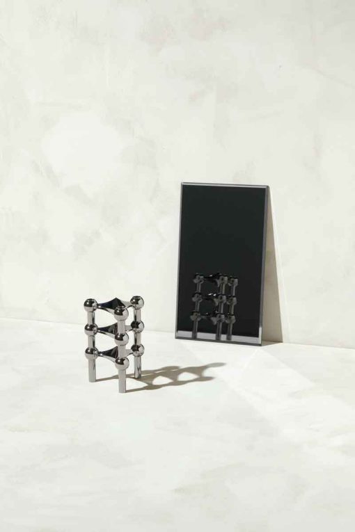 This dark metallic candle holder edition is rooted in the classic