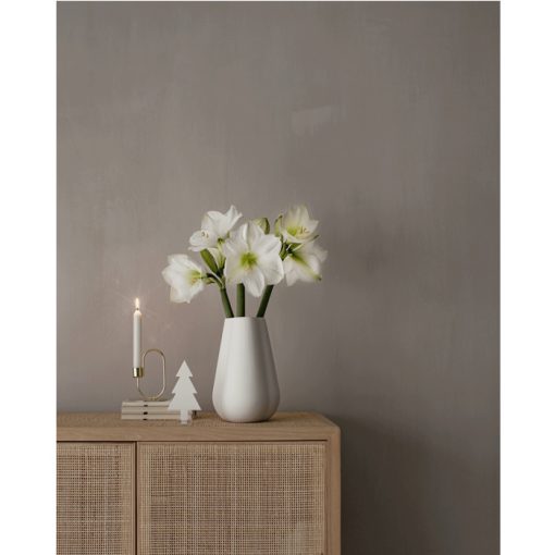 “Swoop is a light and elegant candlestick that draws threads back to the classic candlestick- with handles, but in a modern and playful shape. The handle makes it easy to move around.“