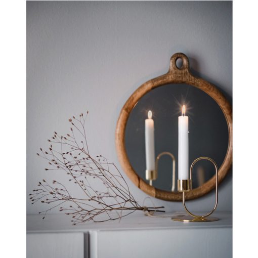 A stylish candlestick designed by Hans-Christian Bauer. The candlestick is made of brass coated stainless steel.