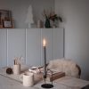 A stylish candlestick designed by Hans-Christian Bauer. The candlestick is made of brass coated stainless steel.