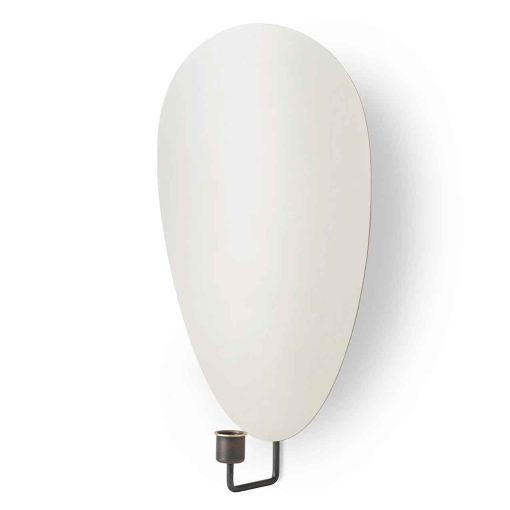 Inspired by French modernist lighting fixtures and designed to resemble a flickering flame, Flambeau is a sculptural design with playful presence. The metal backplate magnifies and reflects candlelight to create intriguing shadows and beautiful ambience.