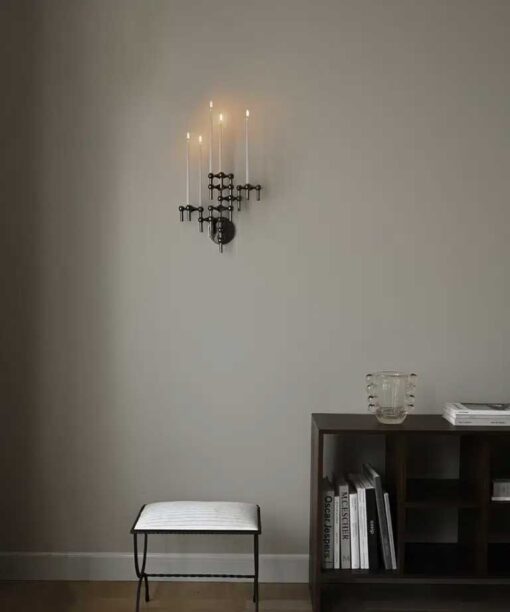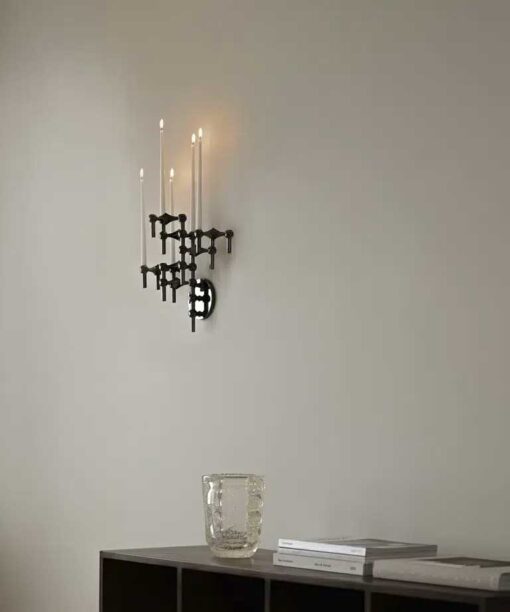 Build up your sculpture from the base of the wall hanger with your collection of candle holders. We recommend placing a maximum of 25 and a minimum of 5 candle holders on the wall hanger when creating your wall sculpture to obtain the best visual base.