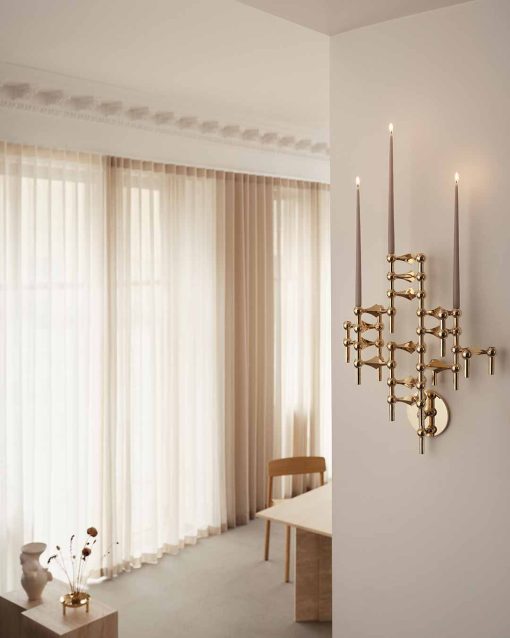 The wall hanger has been carefully developed to expand the visual possibilities of the candle holder. Inspired by the iconic STOFF Nagel design the wall hanger makes it possible to create unique sculptures from vertical surfaces with infinite pieces of the candle holder, bowl, and vase. The wall hanger is understated and discreet encouraging the exploration of individual ways to exhibit your STOFF Nagel collection.