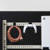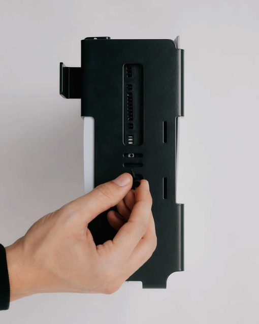 The PS5 Mount features a functional design which helps transform your PS5 console into an integrated element of your TV stand. The PS5 Mount is designed for fitting on the TV stand behind your TV screen, and consists of a bracket with Velcro fastenings. The PS5 Mount is made of steel and can be fitted to all our stands with the exception of Viva.