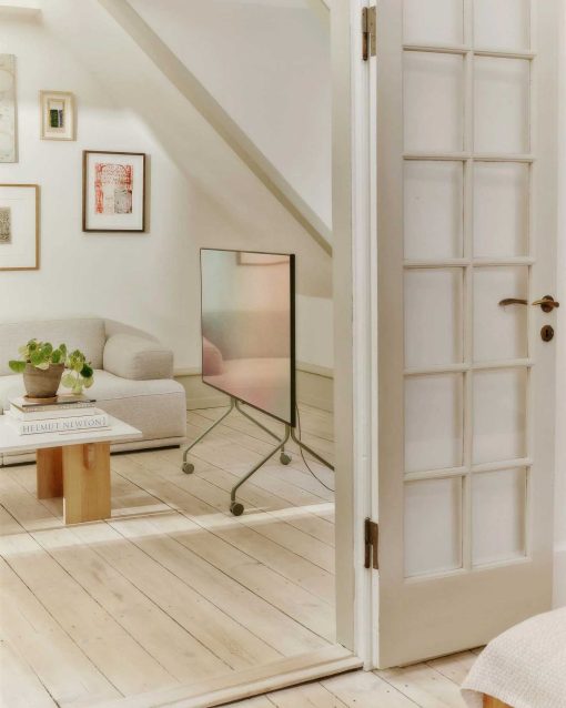 Sjónvarsstandur á hjólum sem passar fyrir 40″ – 70″ flatskjái. Sjá meira um Moon Rollin HÉR