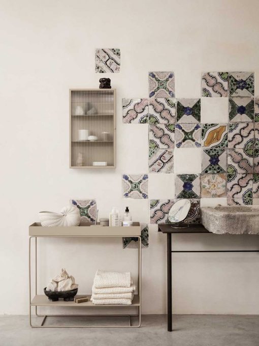 Profiling the same industrial aesthetic as our standalone Haze Vitrine, the Haze Wall Cabinet is, as its name suggests, a practical wall-mounted cabinet for storing smaller items. Crafted in powder-coated steel in a soft cashmere hue and fitted with elegant reeded glass panels and a door, it’s the ideal solution for storing glasses in the kitchen or beauty essentials in the bathroom. It also works equally well in a hallway filled with everyday objects such as keys and sunglasses.