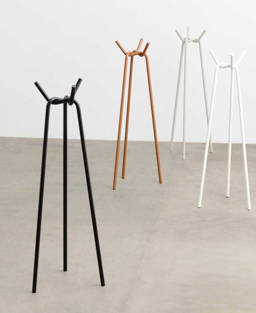 Designed by Japanese designer Jin Kuramoto, Knit is a simple and iconic coat rack with a distinctive sculptural design. Comprising three powder lacquered steel pipes that are interconnected in a three-dimensional way, the pipes are securely ‘knitted’ together to support each other and create the strength of the body. Inspired by the tactile experience of touching materials and the experimental processes of bending and knitting ropes and metal rods, Knit was developed as an extension of HAY’s wardrobe and garment hanging options in a flat-packed design that is easy to assemble. Featuring a high gloss finish that creates a lustrous effect, Knit can be used to add functionality and visual interest to hallways, bedrooms and other private or public areas.