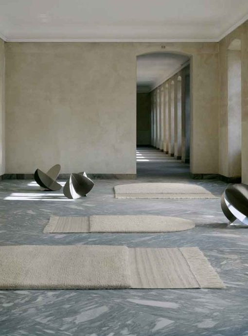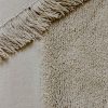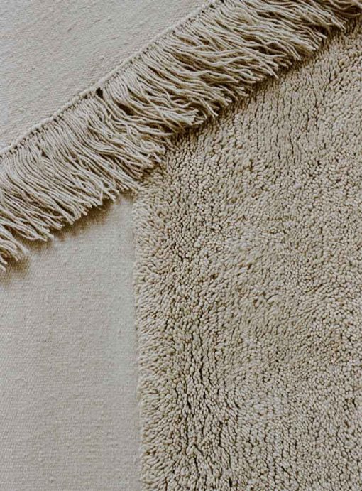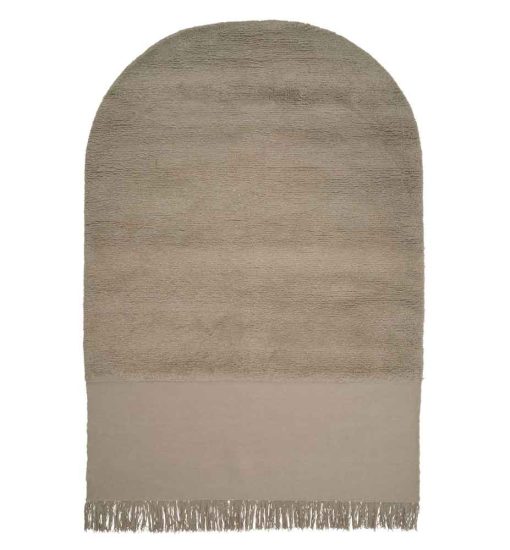 Eternal Eye combines a uniquely rounded shape with textural contrasts to create a characterful rug that appeals to all the senses. The neutral colour palette ensures the focus remains on the structure, as it shifts from thick and sumptuous pile to flat-woven, before finishing with generous fringing at the end. Made in a combination of soft New Zealand wool and organic cotton warp – both materials selected for their durability and natural rustic beauty.