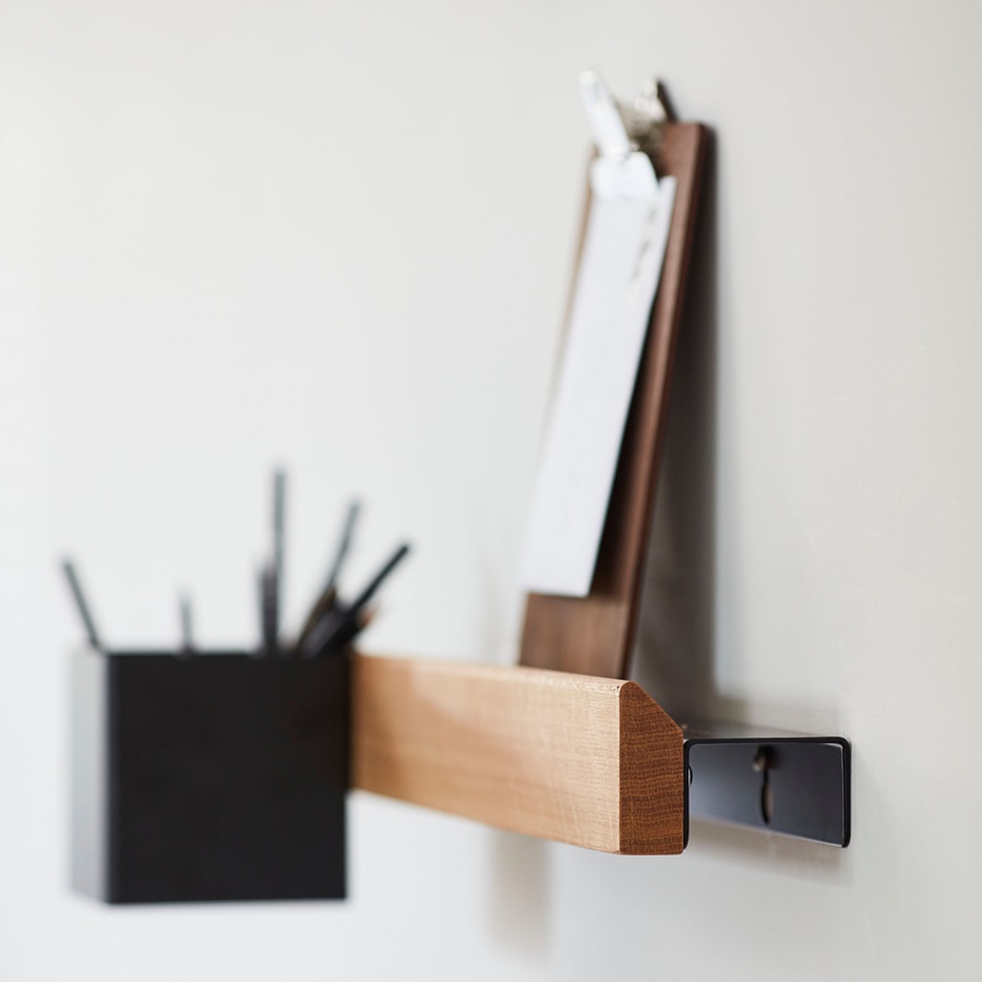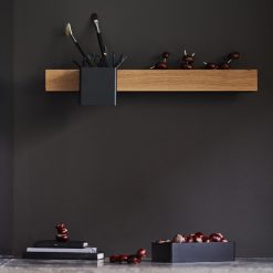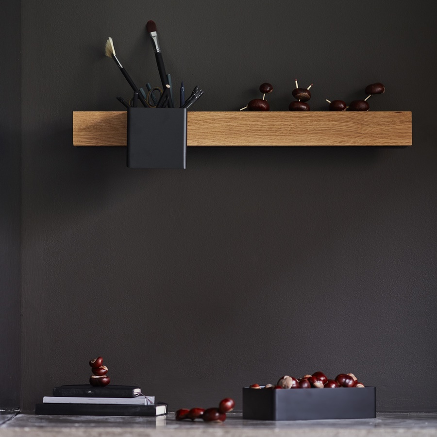 Flex is a multifunctional storage shelf, just the right size and with all the elements you need for keeping your bits and pieces tidy in all sorts of settings. Stylishly functional in the best tradition of Nordic design, Flex is made with a focus on high quality materials and combines a magnetic strip, shelf, hooks and boxes. Effortlessly interchangeable, you choose the set up that works for you. Flex uses a powerful magnet that allows the different elements to be placed just where you want them without wobbling. Boxes and hooks can easily be rearranged, dismounted and put back into place. Take the box with you and put it back when you’re done. Surfaces, tables and worktops can be kept clear with your items neatly organized but always kept easily within reach just where you need them.