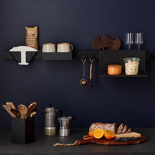 Flex rail in black stained oak is a newly arrived edition of the well-known rail, that up until now only has been available in oak. The dark stain adds a deep and rich expression to the oak and makes the structures of the wood come to life. The result is a perfect balance between the vividness of the oak and the simplicity of the design. Flex is a multifunctional storage shelf, just the right size and with all the elements you need for keeping your bits and pieces tidy in all sorts of settings. Stylishly functional in the best tradition of Nordic design, Flex is made with a focus on high quality materials and combines a magnetic strip, shelf, hooks and boxes. Effortlessly interchangeable, you choose the set up that works for you. Flex uses a powerful magnet that allows the different elements to be placed just where you want them without wobbling.