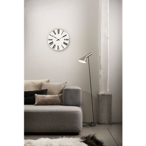 When Arne Jacobsen designed the Roman Clock for Aarhus Town Hall in 1942, he also created a design icon for the home. This wall clock is available in four sizes, and its current design is faithful to the original drawings. With its diameter of 48 cm, this clock is the largest in the range. The clock case supporting the concave glass front gives the clock an appearance of hovering on the wall. A great gift idea for weddings, anniversaries, birthdays, school leavers and other special occasions.