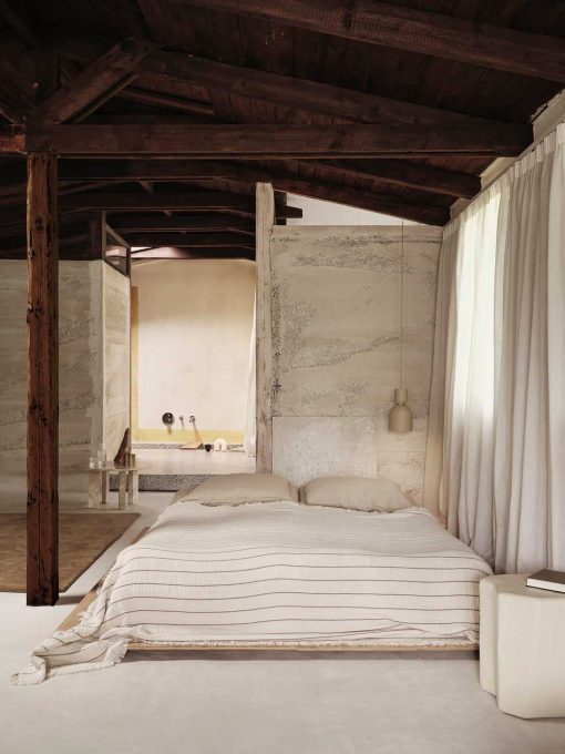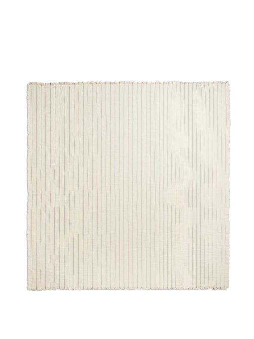 Made from 100% GOTS-certified organic cotton, the Aires Bedspread makes for a casual yet sophisticated addition to your bedroom or living space. Skillfully constructed using a double-weave technique, it interconnects two distinct fabric layers during the weaving process to create a subtly ruched and irregular surface texture. This design offers a gentle, airy touch while providing warmth due to its double-layered weave. A finely woven contrast stripe and delicate fringed edges add further visual interest. Style it as a bedspread or drape over a sofa to create a cosy nest.