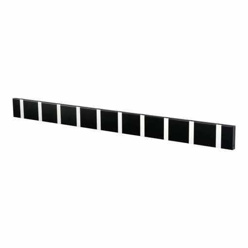 Solid and elegant coat rack with 10 hooks. Choose from several types of woods and a wide range of colours. The hooks are available in black, grey or brass.
