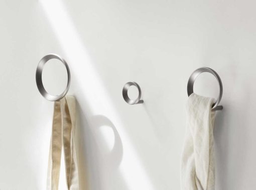 Designed to accommodate many different hanging needs, Loop Hook can be used to hang items in multiple ways, offering additional functionality compared to classic hooks. A coat can easily be slung over the hook, an umbrella through the loop or a clothes hanger hung over the discreet wall piece. Loop comes in three different sizes.