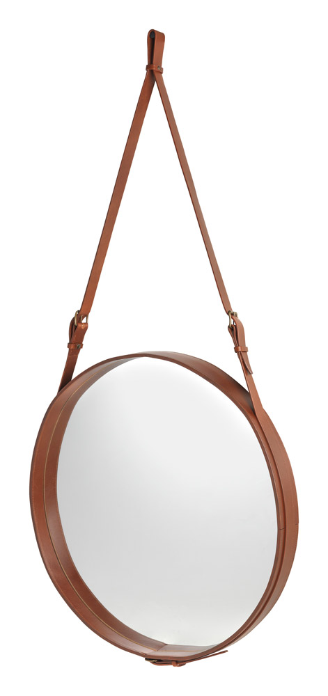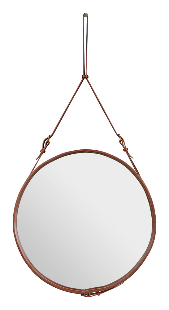 In 1950, Jacques Adnet formed a partnership with a famous French fashion house, where he developed a collection of discreet yet voluptuous leather-covered furniture and interior accessories. Known for being an innovative thinker, Adnet was one of the first designers to combine leather with glass. Accordingly, he designed the elegant, distinctive round leather mirror with equestrian inspired detailing – the Adnet Circulaire Mirror. Besides the remarkable leather and burnished brass details, the mirror in three sizes is also unique as the strap holding the mirror is in direct proportion to the dimension of it.