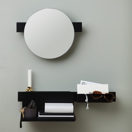 Flex Mirror is a round mirror specially made for the Flex collection. Renew your hallway, bathroom or bedroom by adding Flex Mirror to a Flex Rail. The mirror is made with a subtle design language to ensure that it doesn’t take up too much focus from the Flex-solution as a whole, but only ads function and diversity instead.