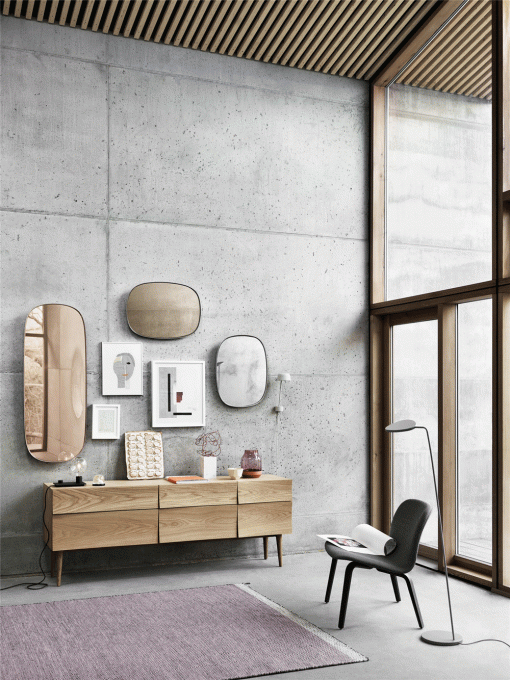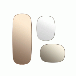 A series of mirrors in two sizes and three color versions. Mirrors with colored glass that challenges the function of a classic mirror and adds the dimension of decoration to an interior setting. Hang the mirrors in groups of two or more to create an almost art-like mirror installation on a wall. The mirrors are suited for use in bathrooms and other wet rooms.