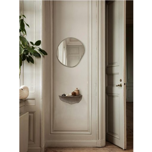 The Pond Series marries form and beauty by using organic shapes, inviting open and fluid forms into your home and turning this functional mirror into a decorative wall piece. The curved edges are held by a slim, metal frame, and can be hung in any direction so that you can find the perfect fit for your space.
