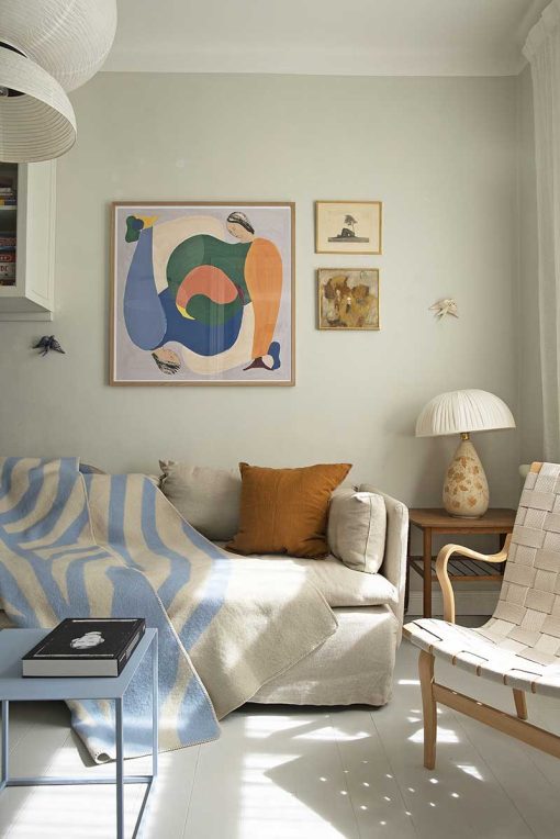 Woolen throw in bright colors. The blanket is made by soft lambs wool that has been eco dyed in Lithuania. With stitching.