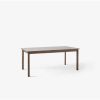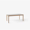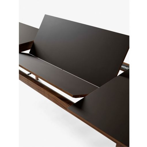 This extendable dining table by Hee Welling employs a butterfly extension technique to provide seating for more people. Its wooden base is topped with a smooth laminate tabletop. Drop-shaped legs and rounded corners add subtle design details, as do the metal patches on each leg that hold it securely together. The table comes in two sizes: 180 x 90cm, or 240 x 100cm and are both extendable with 100cm.