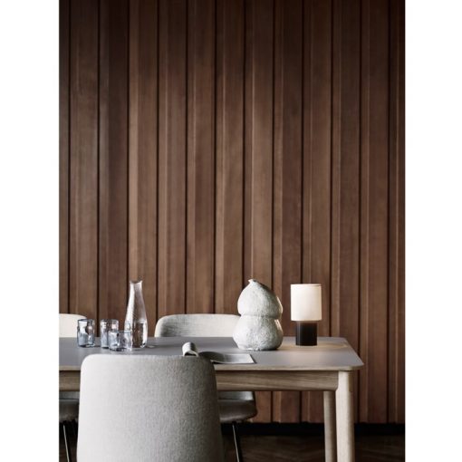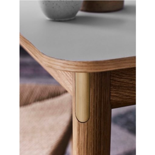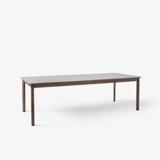 This extendable dining table by Hee Welling employs a butterfly extension technique to provide seating for more people. Its wooden base is topped with a smooth laminate tabletop. Drop-shaped legs and rounded corners add subtle design details, as do the metal patches on each leg that hold it securely together. The table comes in two sizes: 180 x 90cm, or 240 x 100cm both extendable with 100cm
