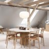 The Vipp Cabin round table is a medium-sized table for the dining room or kitchen. This table features a base of solid, oiled light oak with a marble tabletop.