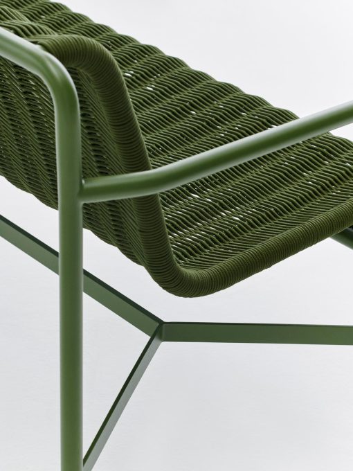 United by its common principle of symmetrical geometry, the Palissade collection of outdoor furniture is designed to integrate effortlessly into both natural and urban settings. The Palissade Cord Dining Bench shares the same design language as the original collection, combining a softer expression with Palissade’s visual simplicity and core strength. Recycled polyester cord is handwoven onto the bench’s powder coated steel frame in a matching tonal colour, creating a comfortable and durable seat. The bench’s versatile colour palette and timeless appeal make it ideal for using in a wide range of outside spaces, from cafés and restaurants to gardens, terraces, and balconies.