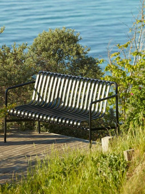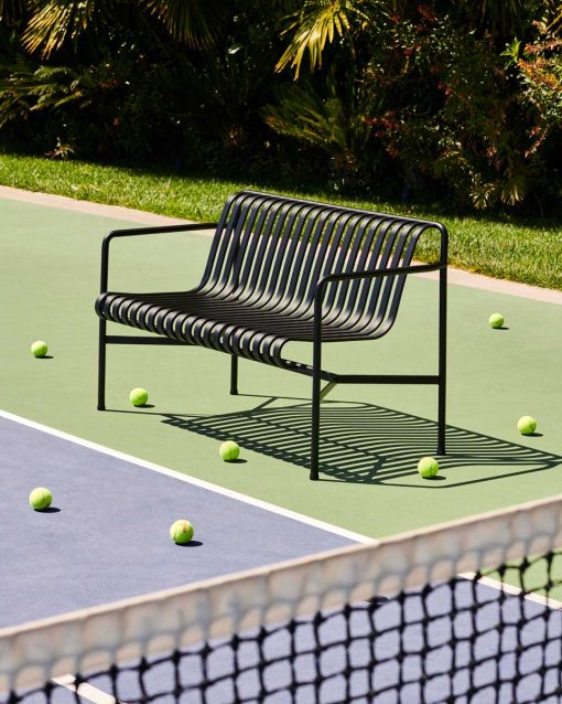 Designed by French brothers Ronan and Erwan Bouroullec, Palissade is a collection of outdoor furniture for HAY in powder coated or hot galvanised steel. United by a common principle of symmetrical geometry, the Palissade collection is engineered to reproduce the same visual simplicity and core strength throughout. Designed in colour and form to integrate effortlessly into a natural landscape or urban setting, Palissade is intended to be used over a longer period of time and become more beautiful over the years. The collection is suited to a wide variety of environments, from cafés and restaurants to gardens, terraces and balconies.