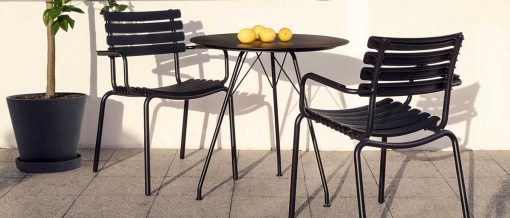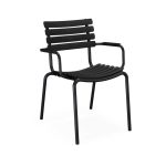 ReCLIPS Dining chair comes in 4 mono colors with the choice of adding armrests in bamboo. The aluminum frame combined with the UV protected plastic lamellas, keep the maintenance to a minimum.