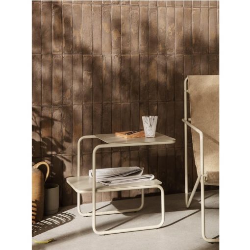 With its intriguing, asymmetrical profile, the Level Side Table presents a modern expression based on a solitary geometric form: its frame a single, continual line. With two levels that offer ample surface space, the table is ideal for extra storage. The side table is crafted from powder coated steel, and can be used both indoors and out.