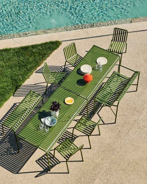 Designed by French brothers Ronan and Erwan Bouroullec, Palissade is a collection of outdoor furniture for HAY in powder coated or hot galvanised steel. United by a common principle of symmetrical geometry, the Palissade collection is engineered to reproduce the same visual simplicity and core strength throughout. Designed in colour and form to integrate effortlessly into a natural landscape or urban setting, Palissade is intended to be used over a longer period of time and become more beautiful over the years. The collection is suited to a wide variety of environments, from cafés and restaurants to gardens, terraces and balconies.