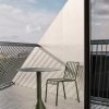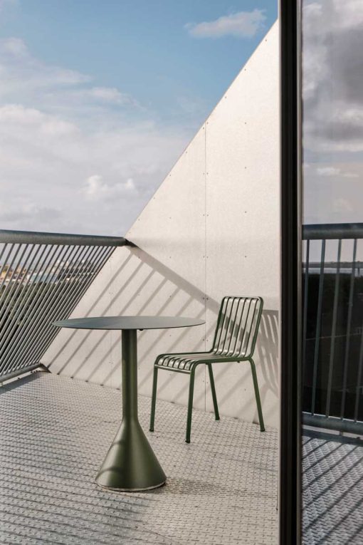 Based on the desire to develop a series of tables to complement the Palissade outdoor furniture collection, French design duo Ronan and Erwan Bouroullec teamed up with HAY to create the Cone Table. Its solid base and ultra-thin steel tabletop share the same graphic design idiom as the rest of the series, enabling the table to be strong without being bulky and elegant without being fragile. The series comprises various sizes with round and square tabletops; all featuring a stabilising concrete base. Specifically designed for outdoor use, the powder-coated steel has a protective outdoor primer for optimal durability and resilience. The collection is available in three different colours and is ideal for terraces, balconies, gardens, cafés and public spaces.