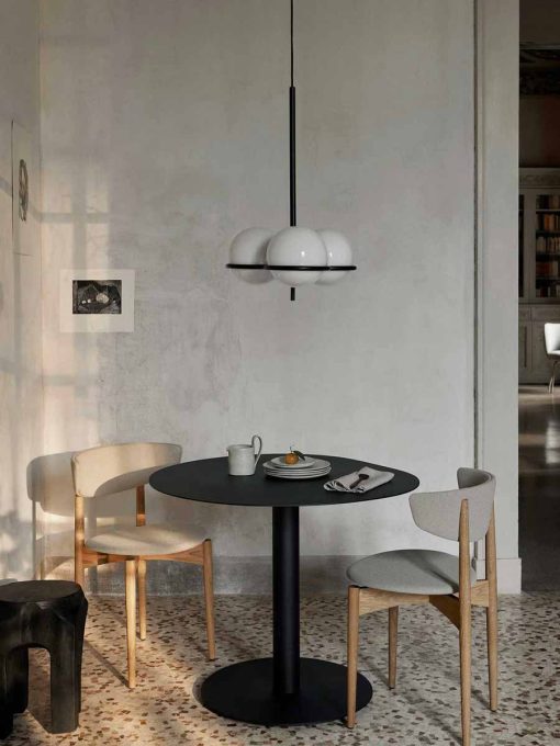 Bring an element of calm to your indoor or outdoor space with the Pond Dining Table. Featuring an organically-shaped tabletop that forms an irregular, imperfect circle, the table is completed by a single, discreet column at the base. Made entirely from durable, powder-coated galvanized steel and with adjustable feet that allow you to align the base plate on uneven surfaces, the Pond Dining Table is ideal for use on a balcony, terrace or in the kitchen. The table arrives flat-packed.