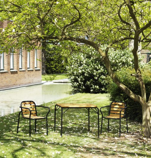 Vig is a collection of outdoor furniture in a timeless and functional design, made from a double powder coated steel to withstand the wear and tear of outside use.