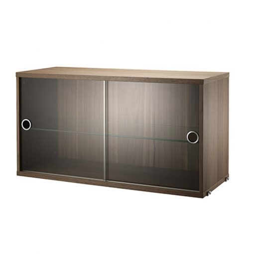 String skápur með gler rennihurðum hentar vel fyrir þá sem vilja breyta notagildi hillunnar eða þegar þörf er á meiri skápaplássi. Skápurinn er í stæðrinni 78×42 og er dýpt hans 30 cm. Skápurinn þolir max 15 kg.