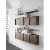String System cabinet furniture. Easy to wall mount the cabinet with sliding doors. The sliding shelves are smooth and easy to open and close. By adding a cabinet to your String system solution, you add extra storage space in no time.