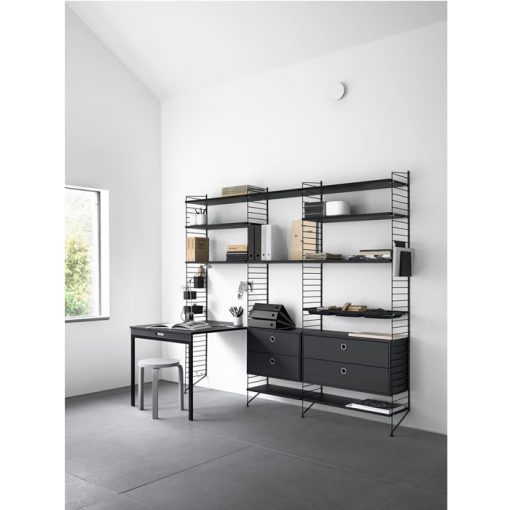 Gólf uppistöður frá String gefa hillueiningunni léttara